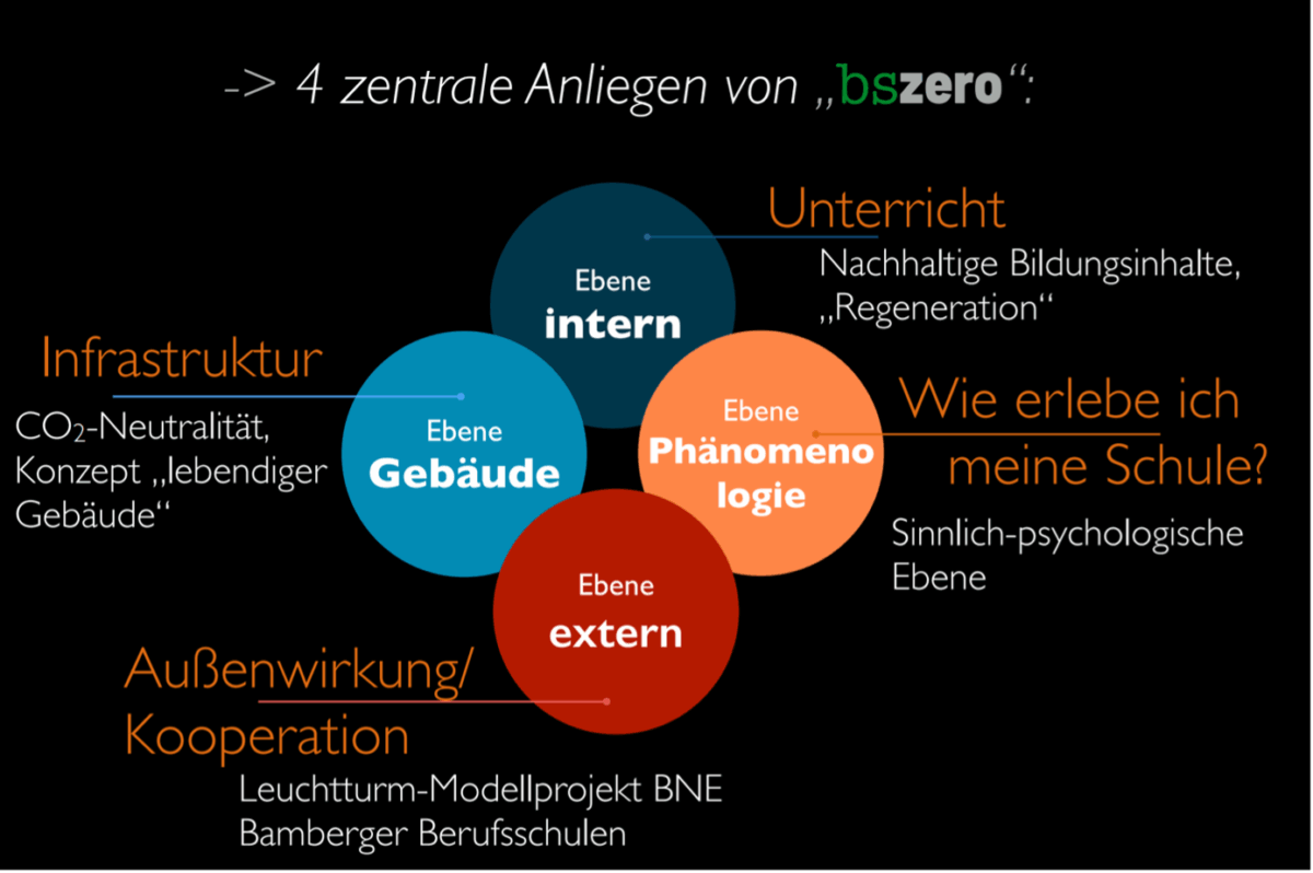 Ein weiterer Schlüsselbereich ist die Kooperation mit externen Partnern. Neben der engen Kooperation mit dem Sachaufwandsträger Landratsamt Bamberg sind unter anderem der Austausch mit dem Bildungsbüro des Landratsamtes Bamberg, dem Umweltamt der Stadt Bamberg, der Bamberger Klimaallianz, lokalen Unternehmen und anderen Bildungseinrichtungen geplant, um Synergien zu nutzen und das Konzept auf eine breitere Basis zu stellen. Dabei ist nicht ausgeschlossen, dass auch Forschungsprojekte mit regionalen Universitäten und Forschungseinrichtungen beantragt werden, die diesen Prozess wissenschaftlich begleiten können. Diese Kooperationen stärken die Außenwirkung der Schule und positionieren sie als Leuchtturmprojekt in der Region. Dabei soll insbesondere die Rolle der beruflichen Bildung im Transformationsprozess sichtbar werden.