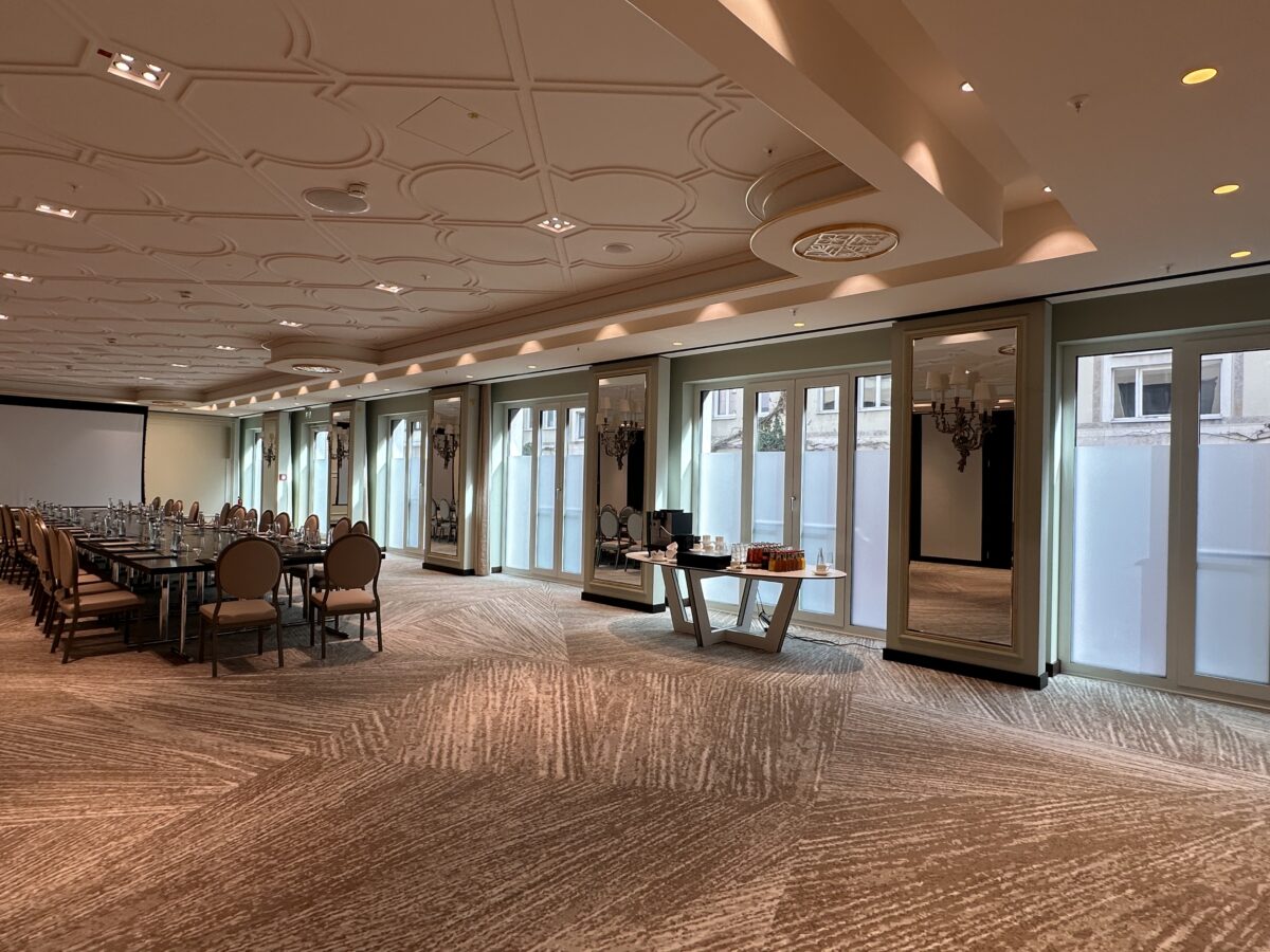 Zum Schluss ließ es sich der Hoteldirektor nicht nehmen, die Schüler und Schülerinnen in einem Veranstaltungsraum zu begrüßen. Offen beantwortete er die gestellten Fragen und erzählte viel Informatives. Mit großen Augen und staunend verließ die Klasse das Hotel und besichtigte anschließend die Münchener Innenstadt mit dem traditionsreichen Delikatessenhaus Dallmayr und dem Viktualienmarkt.