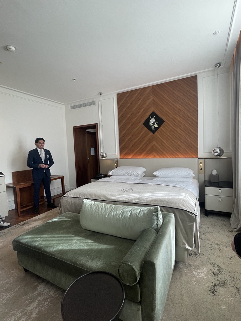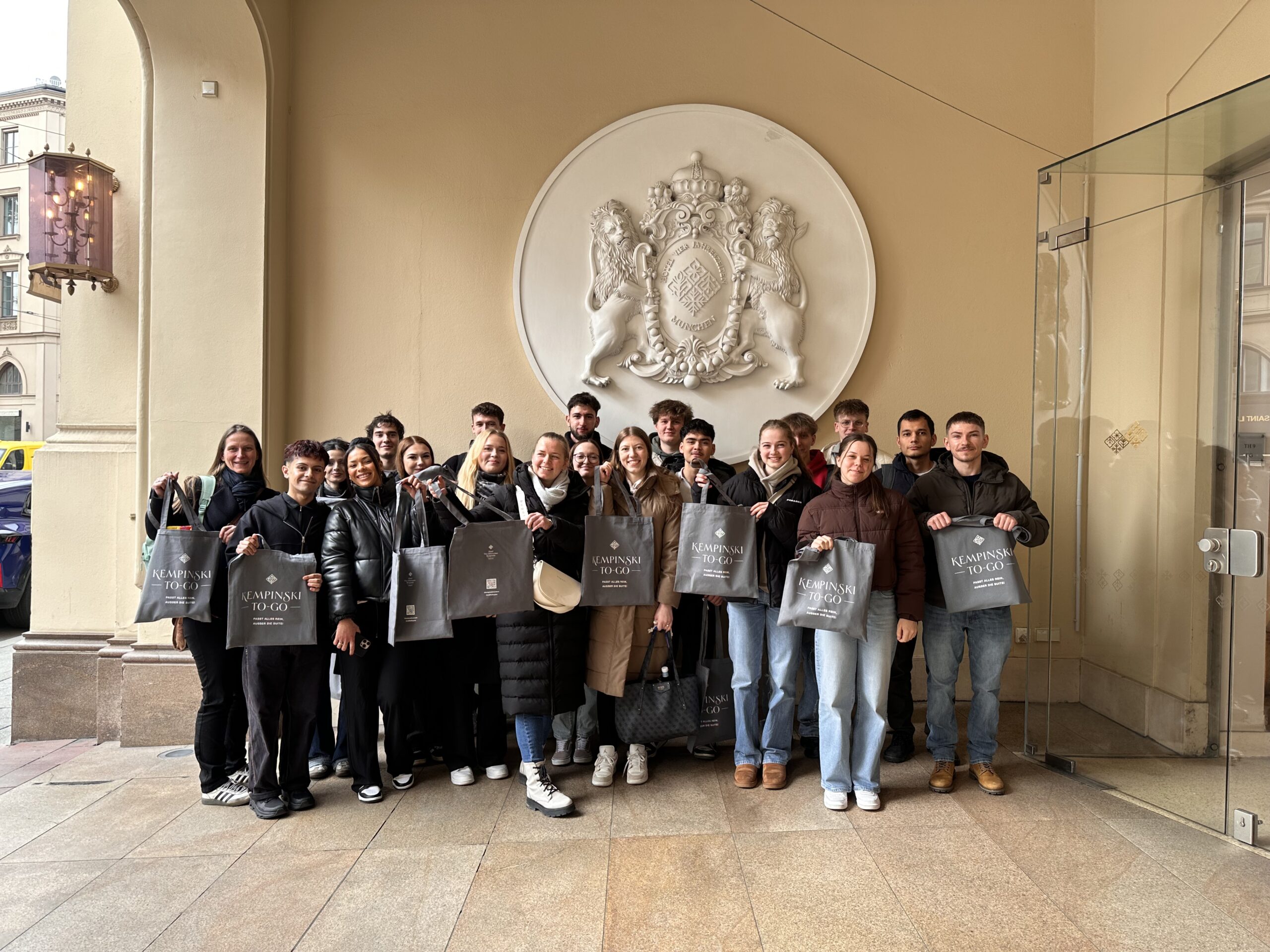 Am 10.02.2026 besichtigte die Klasse NGH 12 im Rahmen einer Klassenfahrt das Hotel Vier Jahreszeiten Kempinski in München. Das 1858 eröffnete Luxushotel der Fünf-Sterne-Kategorie zählt zu den besten Hotels in Deutschland. Durch zwei Mitarbeiter erhielten die Schüler und Schülerinnen einen Einblick in die Welt des Luxushotels. In einem Rundgang ging es durch die Vier Jahreszeiten Lobby zu mehreren Zimmern und Suiten und dem Spa-Bereich. Die Ludwig Suite, eine der exklusivsten Präsidentensuiten, konnte leider aufgrund der anstehenden Sicherheitskonferenz nicht besichtigt werden.